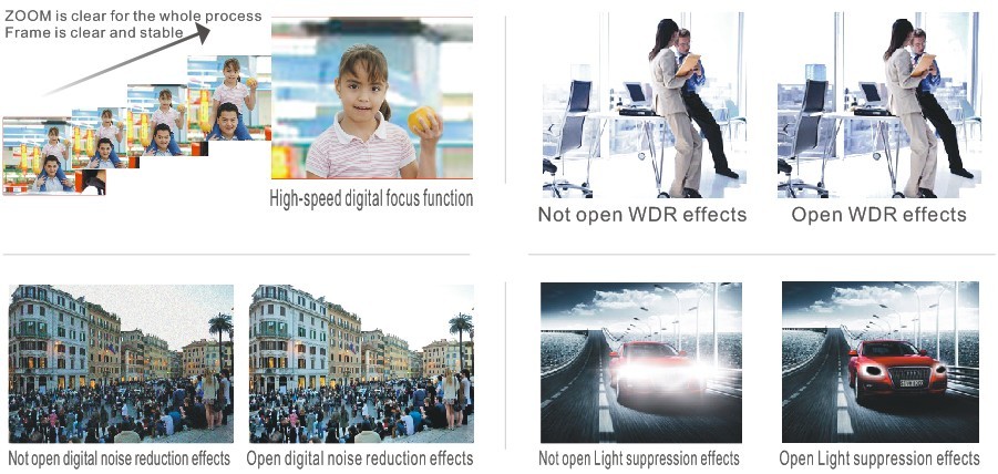 | Focus | Auto/manual, take high-performance DSP to realize complete digit and ultra-high speed focus function | ||